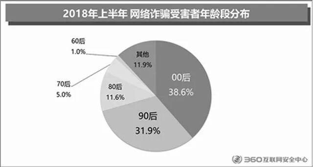 360互联网安全中心日前发布的《2018年上半年中国互联网安全报告》显示,00后已经由过去的第三、第四突然跃居到网络诈骗受害者数量第一的位置,而网络诈骗受害者中男性占七成。