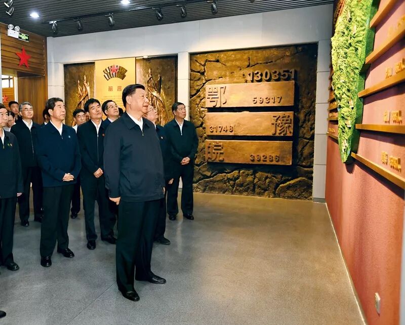 2019年9月16日至18日,中共中央总书记、国家主席、中央军委主席习近平在河南考察。这是16日下午,习近平来到位于信阳市新县的鄂豫皖苏区首府烈士陵园,瞻仰革命烈士纪念堂。新华社记者 谢环驰/摄