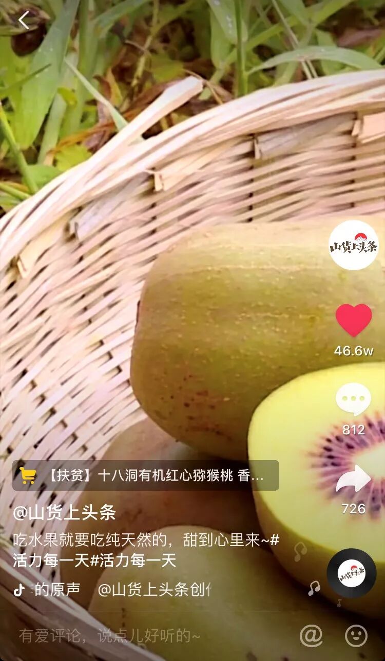“山货上头条”项目通过整合图文、短视频资源,链接信息和贫困户,目前已支持7个国家级贫困县打造出四川古蔺脆红李、湖南花垣十八洞猕猴桃等7款扶贫山货品牌,总销量超过50万件,总销售额超过2000万元,惠及2万多户贫困户家庭。2019年初,国务院扶贫办授予该项目企业扶贫50佳案例。