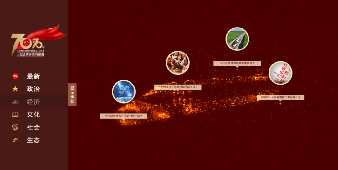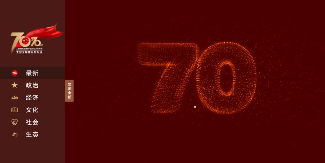 9月12日,“70年70问”大型全媒体系列报道专题正式上线,打破以往传统专题模式,兼顾视觉效果与内容展示,且单独开发移动端H5版本,全力打造新型全媒体专题,成为设计+视频+前端真正合一的全媒体产品。