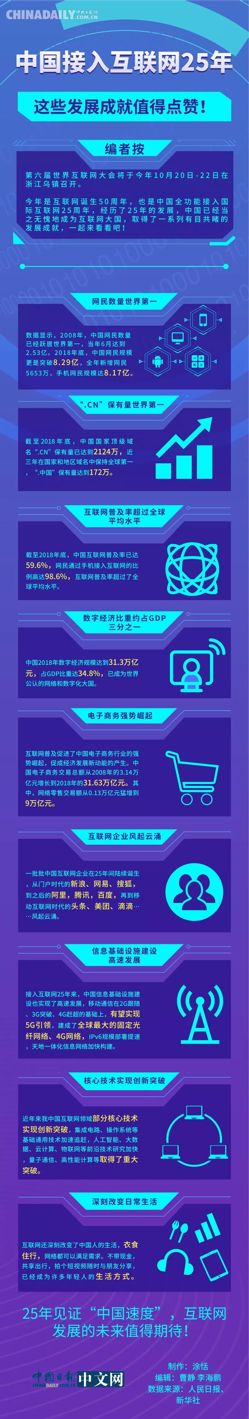 中国接入互联网25年,这些发展成就值得点赞!