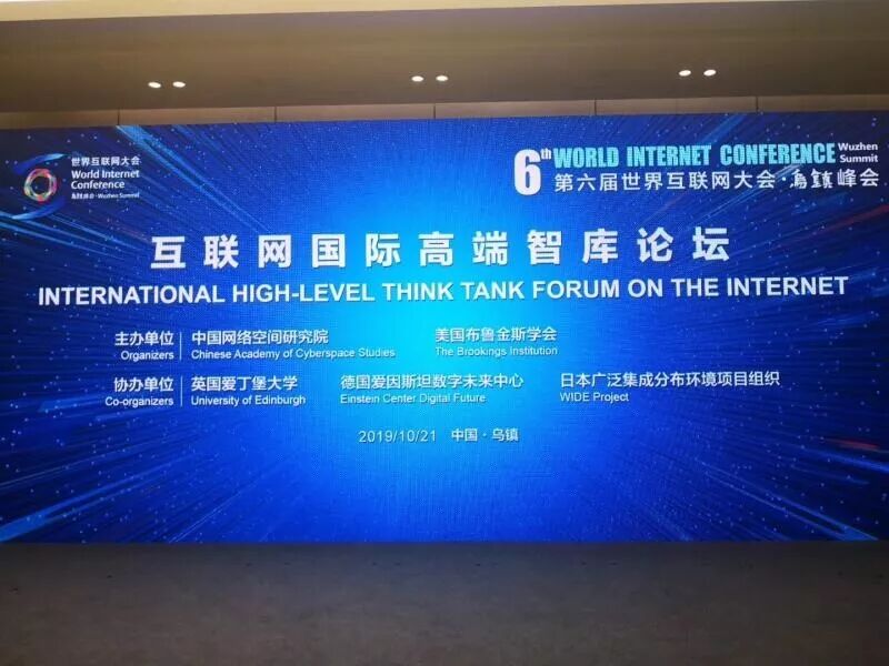 10月21日下午,第六届世界互联网大会互联网国际高端智库论坛在乌镇举办。此次论坛的主题为“信息时代的文明交融与智库责任”,由中国网络空间研究院和美国布鲁金斯学会联合主办,英国爱丁堡大学、德国爱因斯坦数字未来中心、日本广泛集成分布环境项目组织共同协办。来自15个国家和地区的120余位全球顶尖智库专家学者参加,其中包括6位互联网名人堂成员。