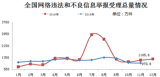 (原题为《2019年11月全国受理网络违法和不良信息举报970.8万件》)
