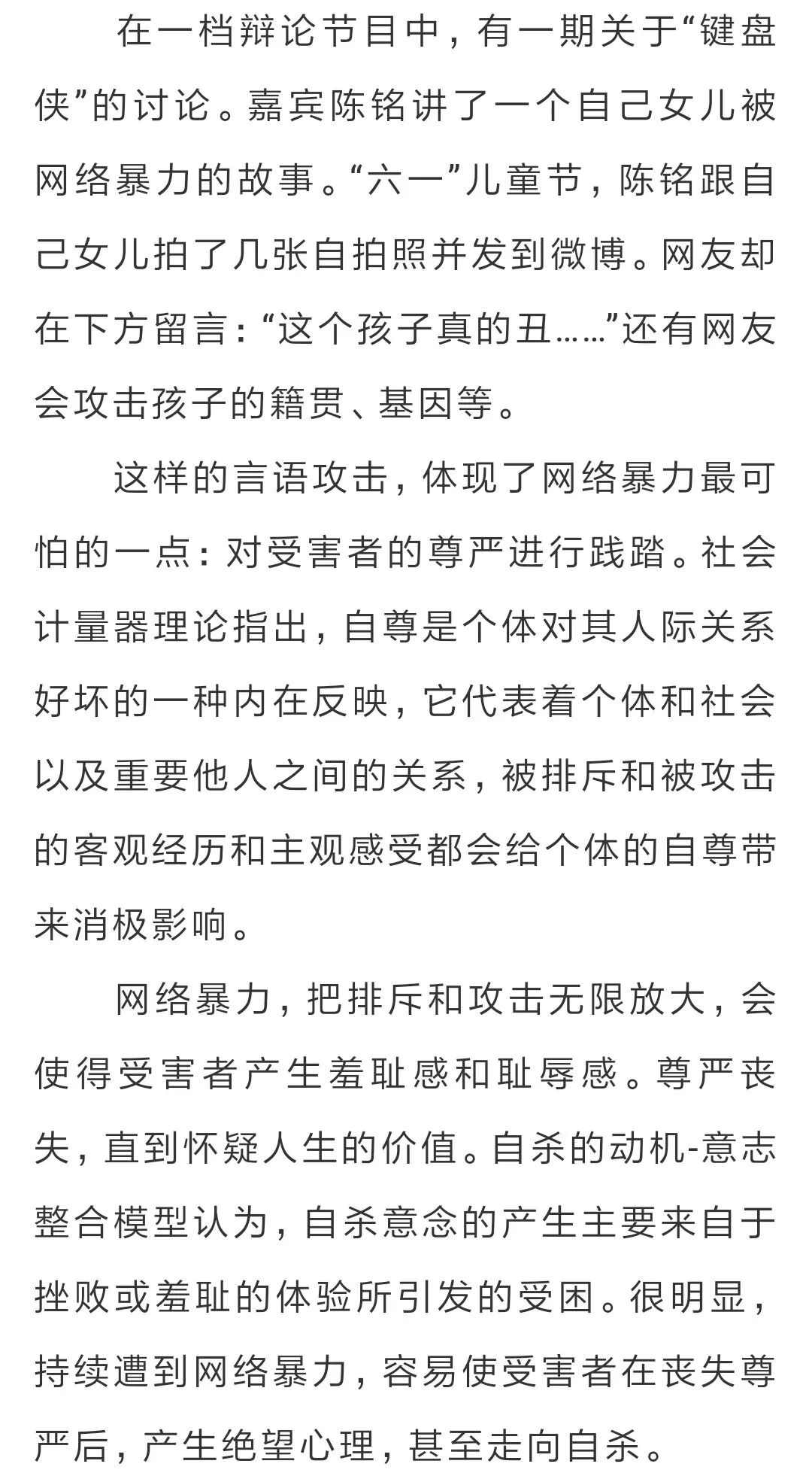 网络暴力最可怕的是对尊严的践踏