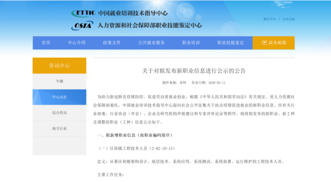 受人社部委托,中国就业培训技术指导中心11日发布《关于对拟发布新职业信息进行公示的公告》,拟新增10个新职业。