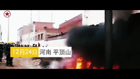 学校墙外垃圾堆大火被扑灭后,小学生们向消防车敬礼。