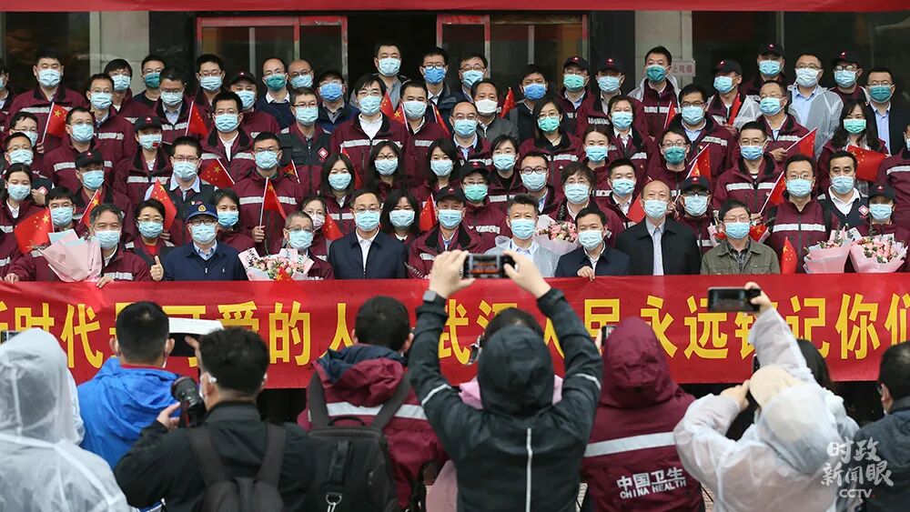 4月20日,国家疾控中心援汉工作队70余名队员在圆满完成任务后踏上归途。这是他们在武汉晚报大楼前的合影。