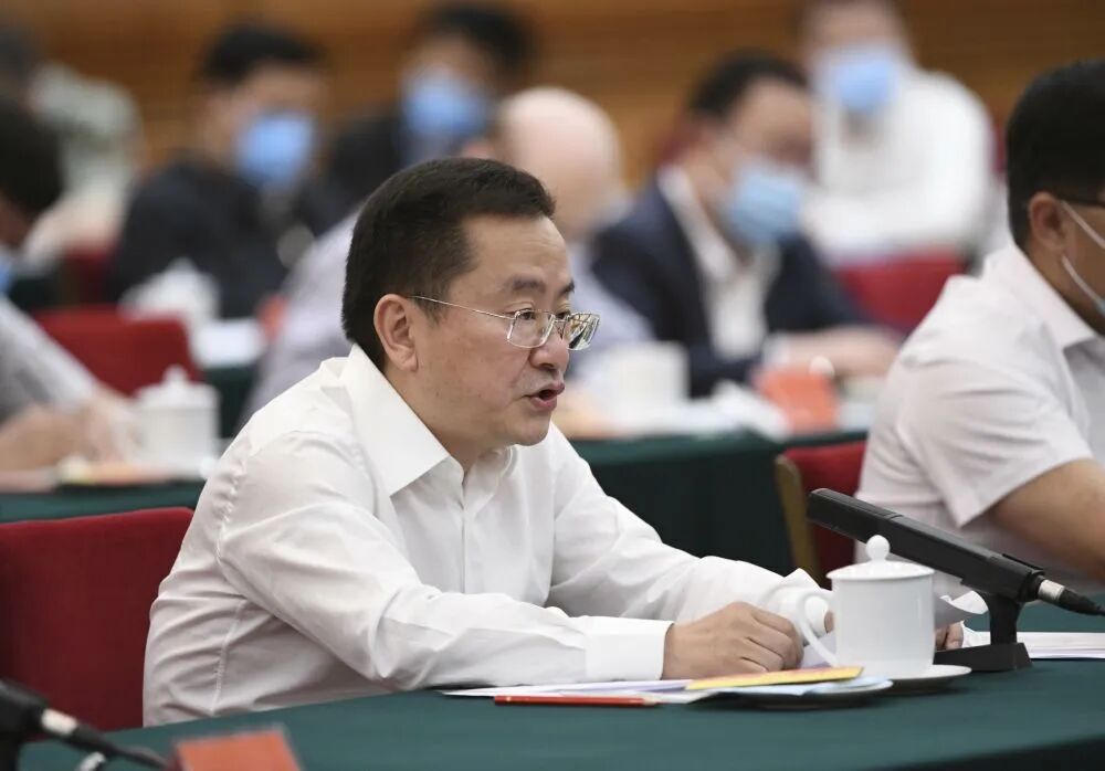 杨维中在座谈会上发言。新华社记者 殷博古 摄