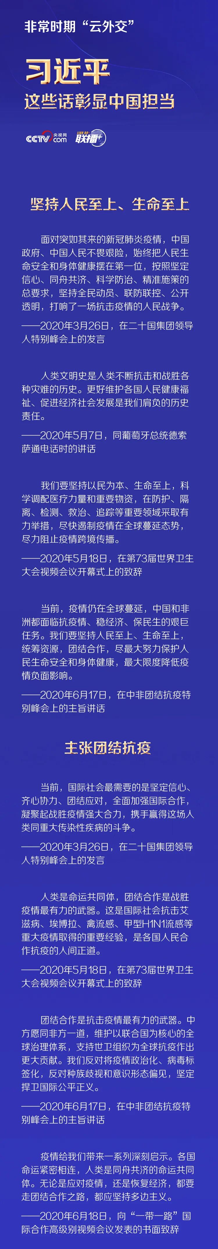 本文特梳理相关讲话,与您一起学习感悟习近平主席“云外交”中的中国担当。