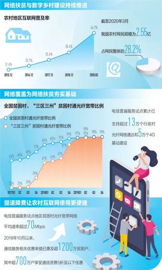 网络高速路不断向偏远贫困地区延伸,越来越多的农村贫困人口搭上了信息化快车,用上了便捷多样的信息服务,在共享信息化发展成果中有了更多获得感。当前,我国贫困地区网络基础设施建设进展如何?网络提速降费成效怎样?农村宽带应用有了哪些新变化?