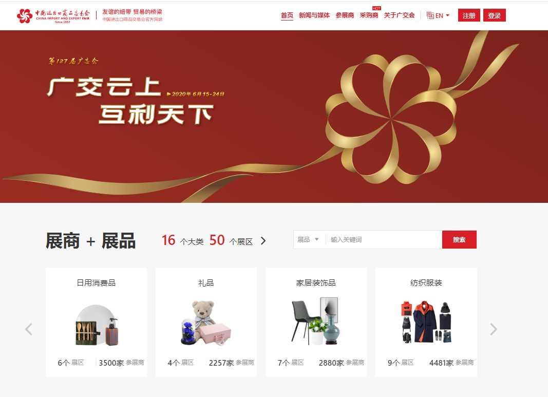 今年的广交会官网进行了全新升级,将网上展示、推介、供采对接、在线洽谈等融为一体,形成一站式全天候网上举办新模式。网站设有展商展品、新闻与活动、全球供采对接、大会服务、跨境电商专区五大版块内容。