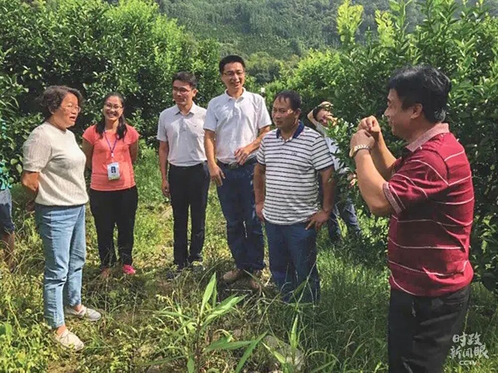 2018年8月份,广西乐业县百坭村第一书记黄文秀(左二)邀请专家指导村民发展砂糖橘产业。2019年6月黄文秀不幸遇难后,习近平总书记对其先进事迹作出重要指示。(资料图)