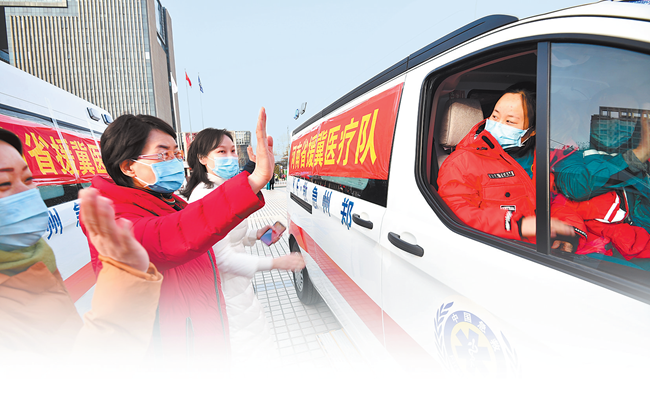 1月13日,河南省援冀医疗队从郑州市紧急医疗救援中心出发