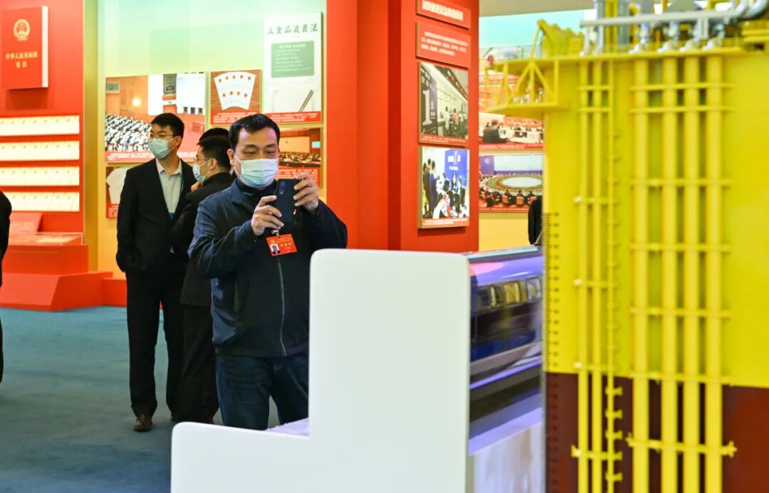 2022年10月17日晚,参加党的二十大的代表们来到北京展览馆参观“奋进新时代”主题成就展。